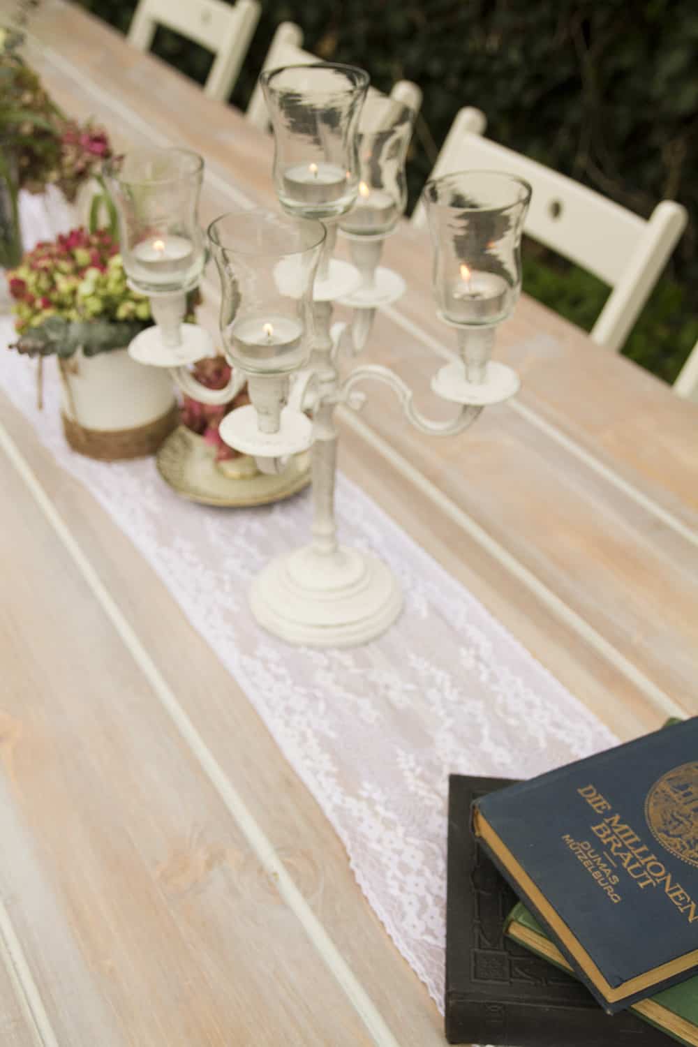 Unsere wunderschönen Spitzenläufer ergänzen der vintage Look perfekt. (Jute nicht im Preis enthalten)